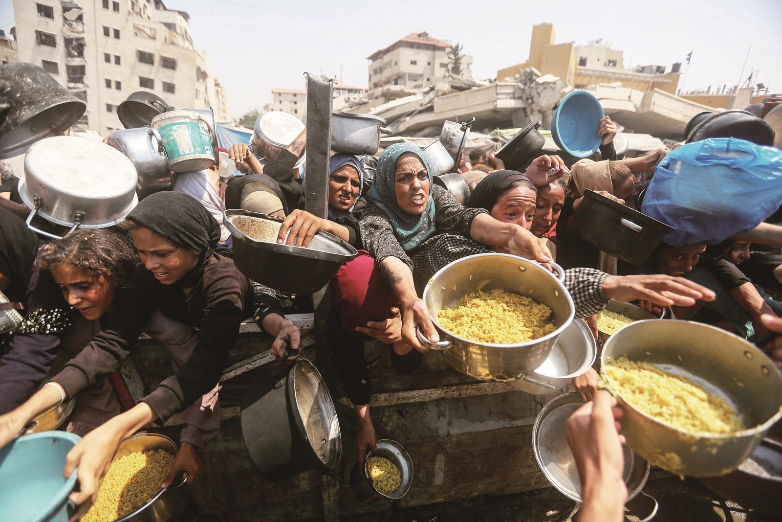加沙城,民众领取免费食物