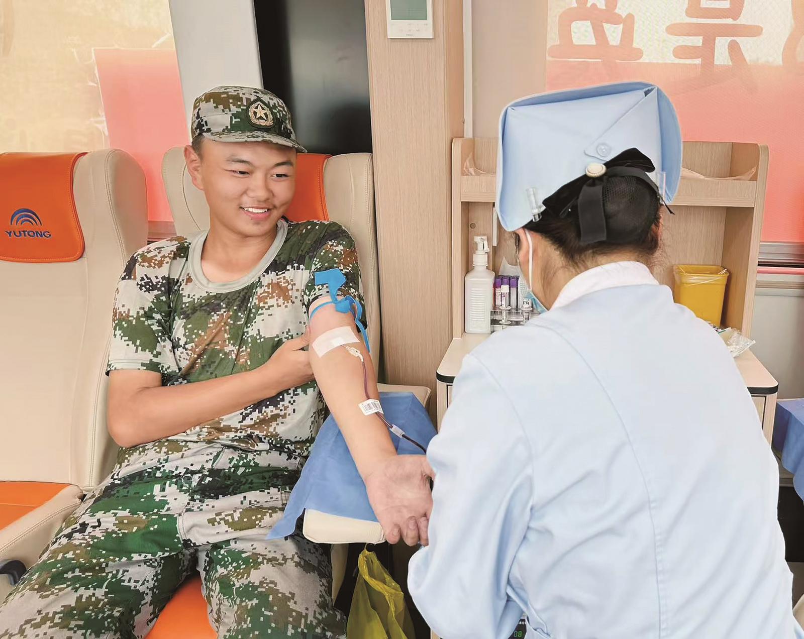 9月29日,市中心血站走进邵阳学院七里坪校区,开展了以“健康知识普及・我行动”为主题的宣传暨高校新生健康知识巡讲活动,动员广大大学新生积极参与无偿献血。图为该校区大一新生正在进行无偿献血。