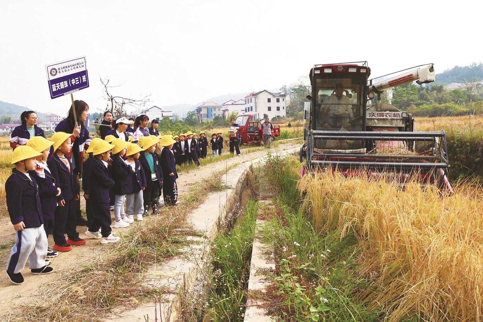 10月28日,新邵县蓝天明珠幼儿园组织近70名幼儿,来到田间地头开展研学活动,通过生动且有意义的“户外课堂”,亲手体验农耕“穗”月,培养孩子们珍惜粮食、尊重劳动的良好品质。