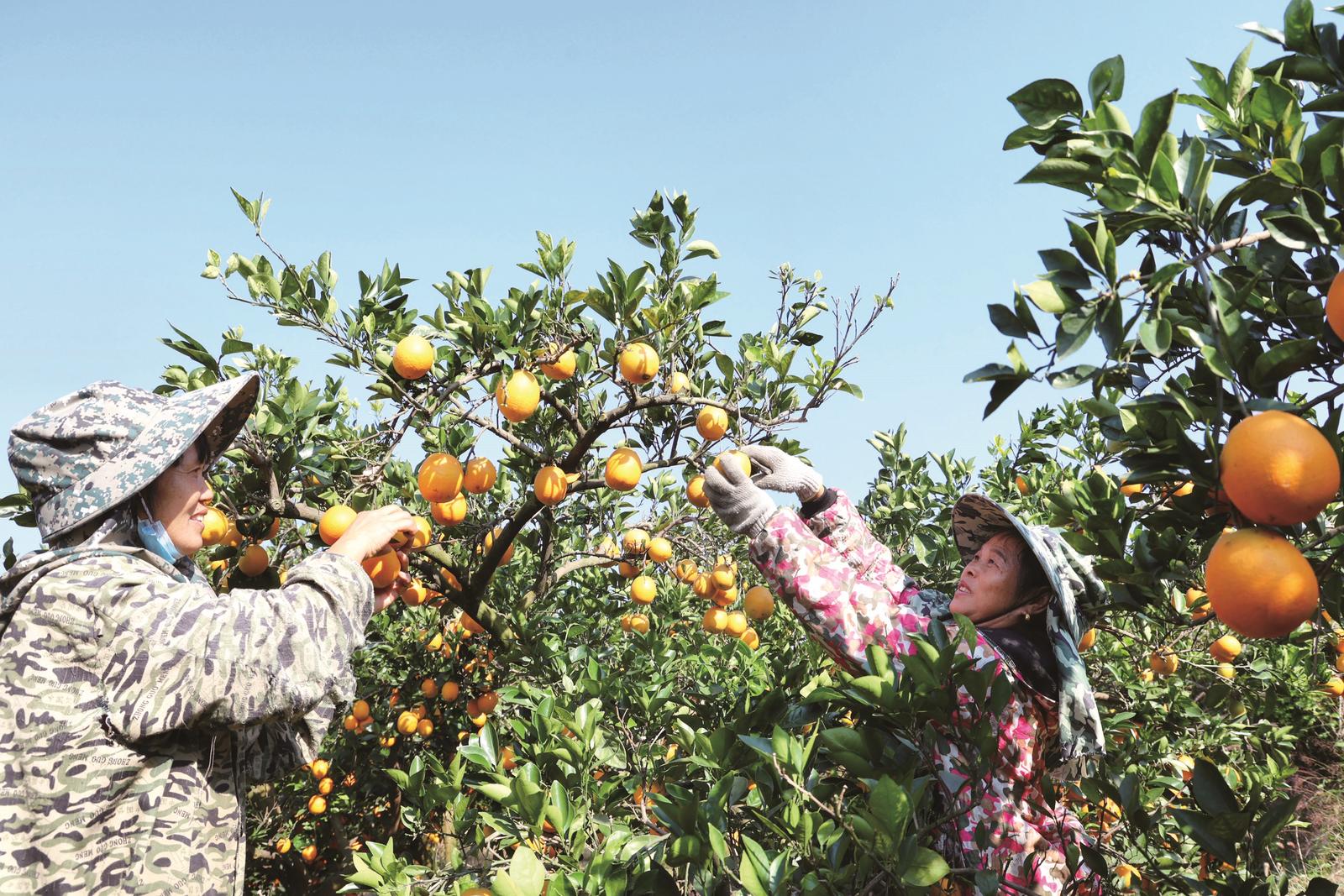 11月14日,邵阳县蔡桥乡福林村村民在采摘脐橙。近年来,该村通过产业转型,将昔日矿场蜕变为连绵橙园。如今,满山脐橙不仅绿化了山村,更成为村民致富的“黄金果”。