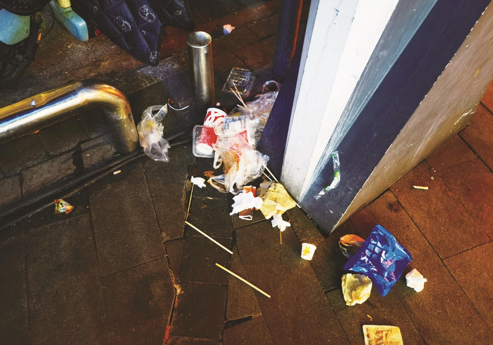 塑料瓶、纸巾、烟蒂等废弃物随处可见。