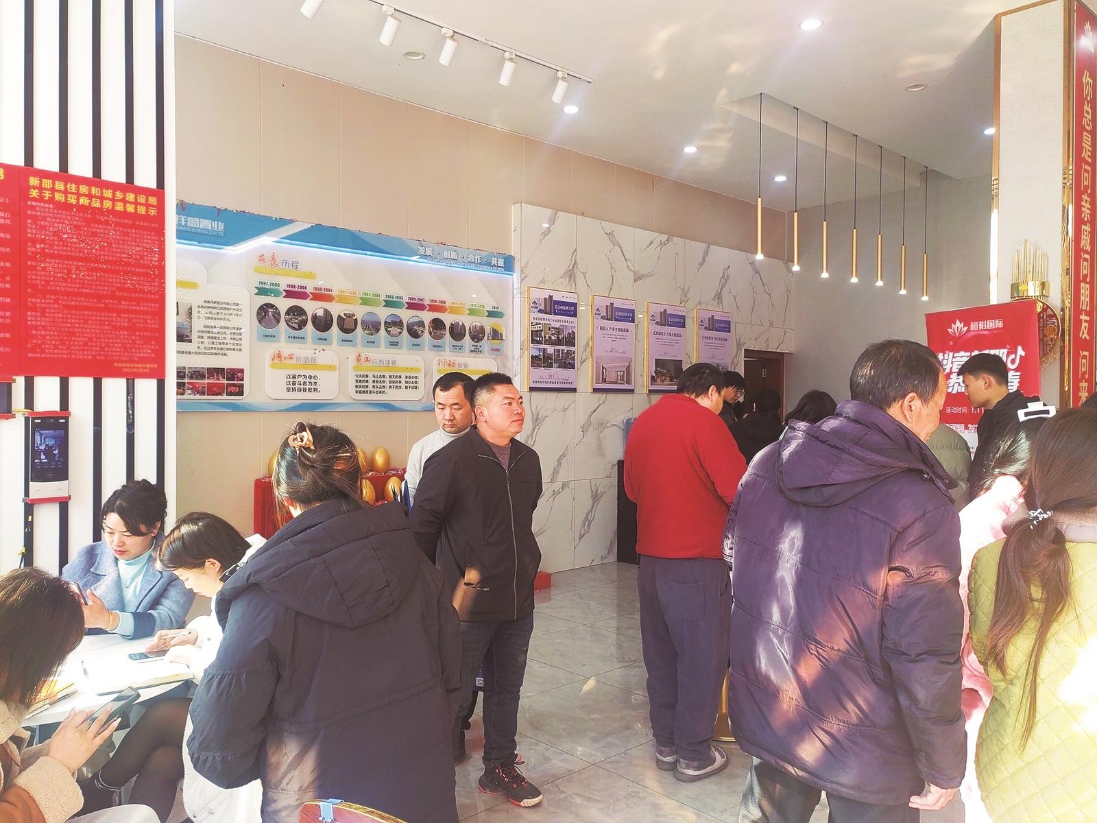 1月26日,市民在和裕国际项目售楼部了解促销优惠“力度”。