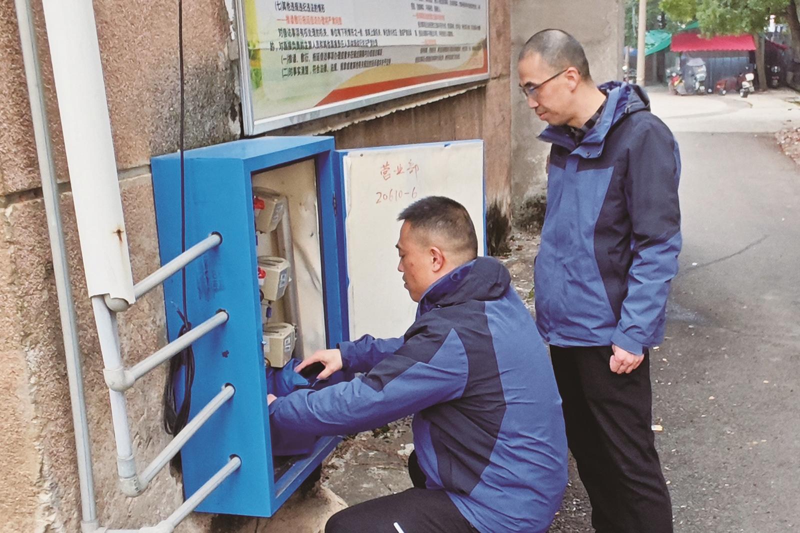 邵东市自来水公司工作人员对用户水管、水表进行防冰冻“穿衣戴帽”