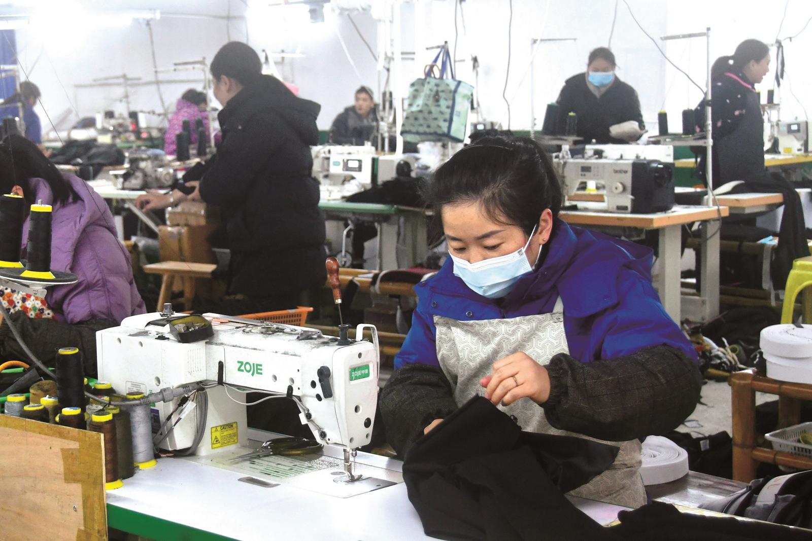 1月29日,位于新邵县陈家坊镇箱包服装产业园的新邵中南洋洋制衣厂内,工人正加紧生产成衣。该厂年产服装10万件,产值达800万元,并为60名劳动力提供就业。临近春节,工厂正全力赶制订单,以满足节日市场需求。