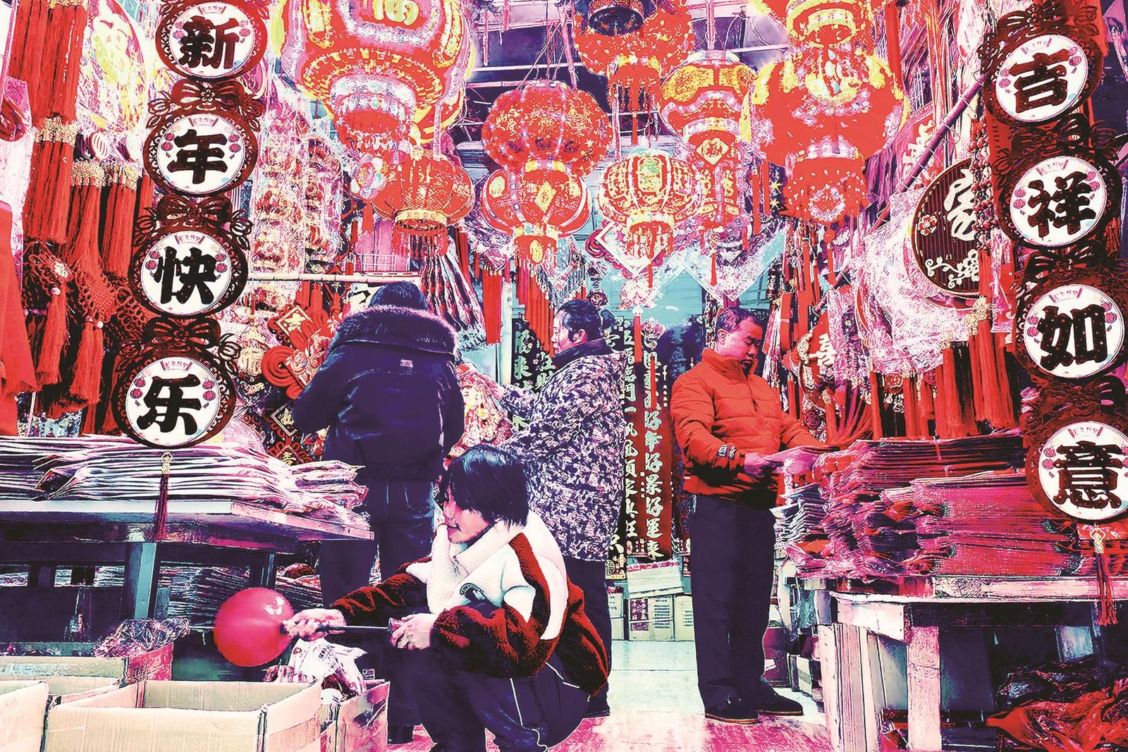 解放路的“中国红”商店内,不少居民正在选购春联、大红灯笼、中国结等年节饰品