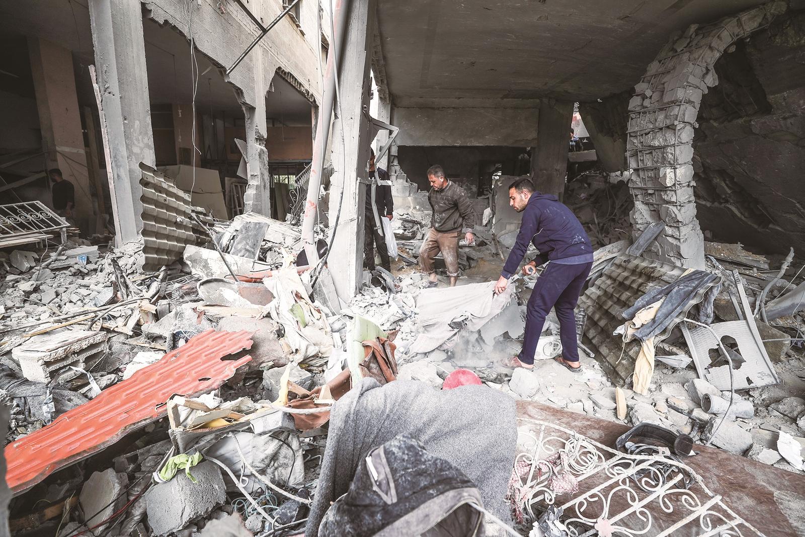 4月12日,在加沙地带北部的杰巴利耶难民营,民众查看以军袭击后的废墟。 新华社发(马哈茂德·扎基摄)