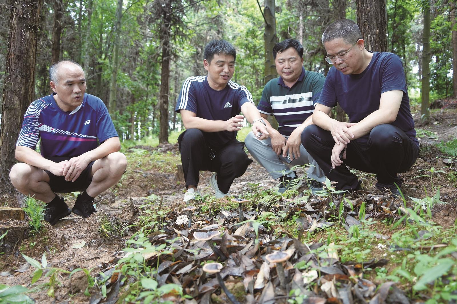 6月25日,中南林业科技大学的专家教授在绥宁县寨市国有林场开展林场林下仿野生紫灵芝种植调研和技术指导。近年来,该林场坚持“生态美、产业兴、百姓富”的发展路径,大力发展仿野生紫灵芝种植和精深加工,推动林下经济高质量发展。
