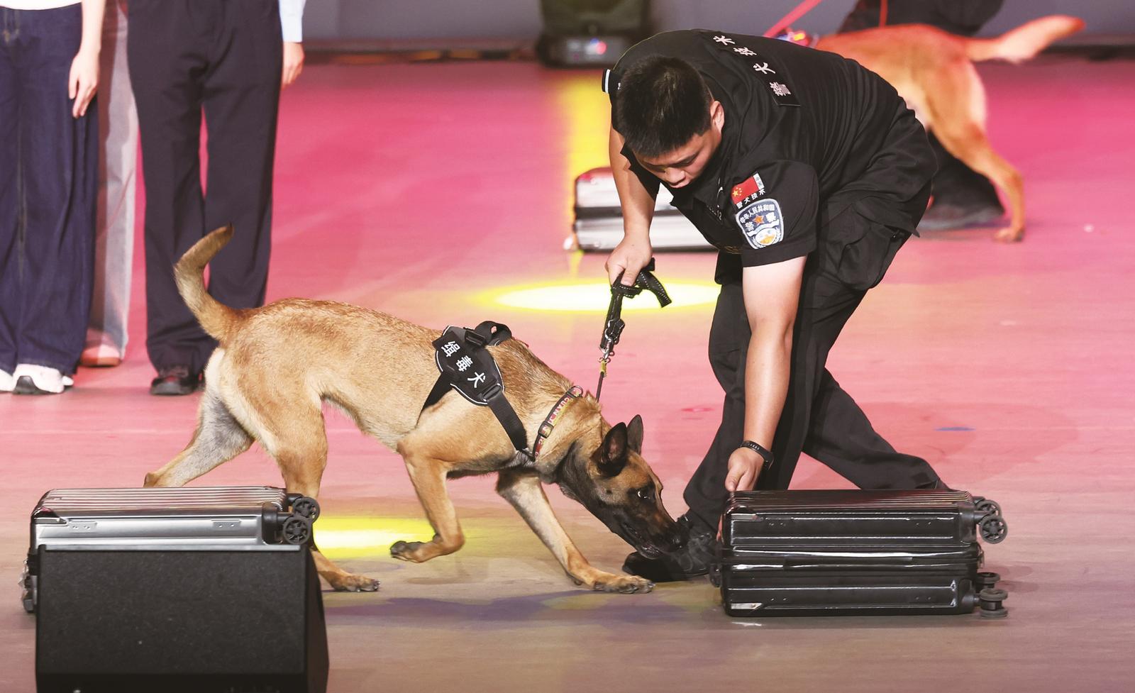 2025年6月26日是第38个国际禁毒日。多地展开宣传和教育活动,引导人民群众特别是青少年懂法守法,推动“健康人生,绿色无毒”理念深入人心。图为6月26日,在河北师范大学举办的国际禁毒日集中宣传主题活动中,缉毒犬进行搜寻毒品展示。