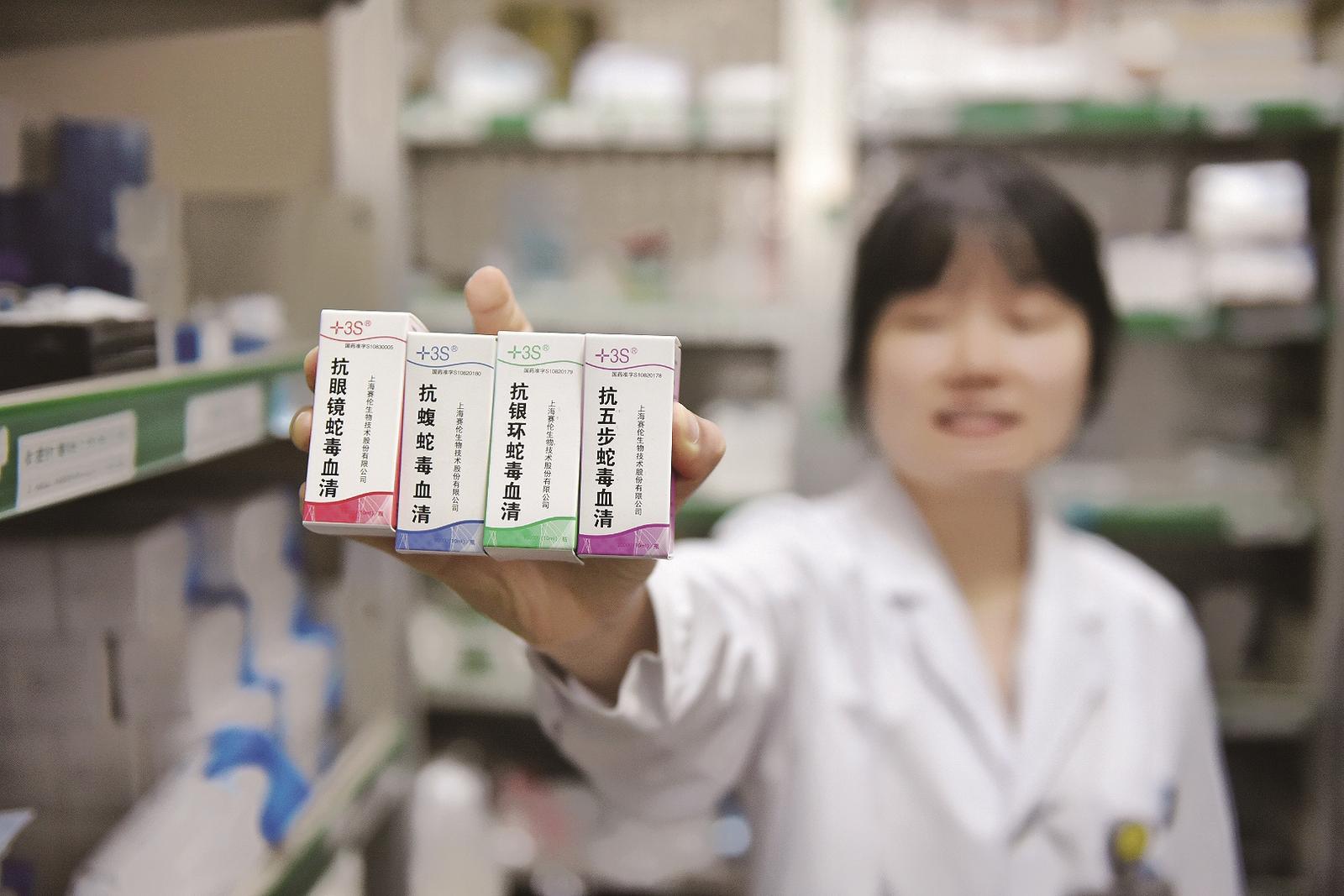 ◀邵阳市中心医院急诊科药房配备抗眼镜蛇毒、抗蝮蛇毒、抗银环蛇毒、抗五步蛇毒血清。 邵阳日报记者 申兴刚 摄