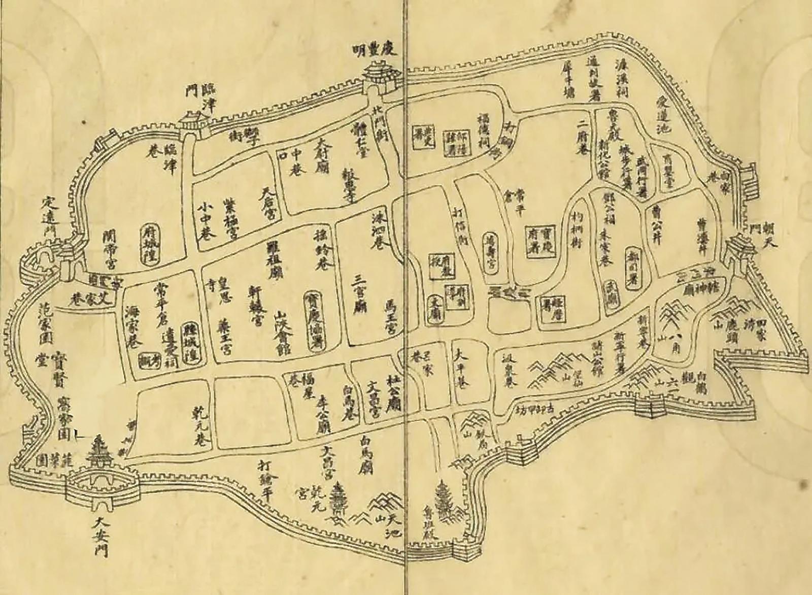 太平巷,自打信街口南过背街至南城墙。巷内旧有太平寺,其旁有铁局山,传为八仙之一吕洞宾炼丹处。巷因寺得名,解放后改名太平二巷。