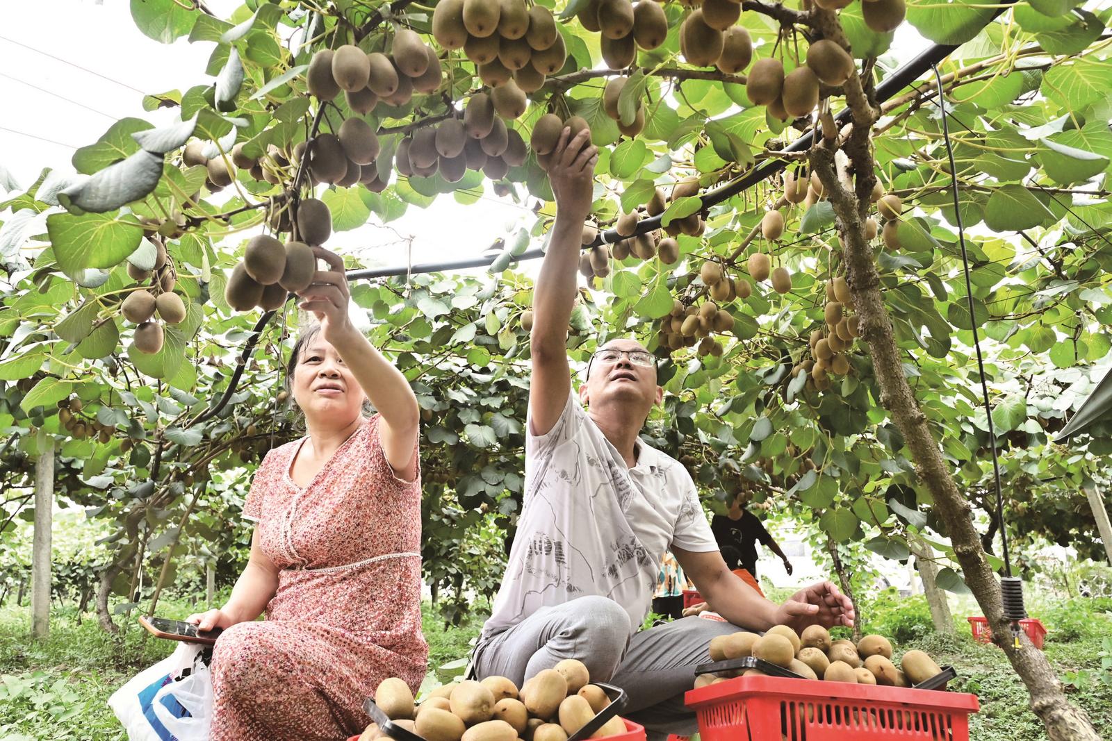 9月8日,隆回县金石桥镇佳瑶农业猕猴桃基地迎来众多采摘游客。该镇依托生态优势,发展杨梅、葡萄、猕猴桃等水果种植,推动农旅融合。目前猕猴桃进入丰收期,吸引大量游客前来体验采摘。