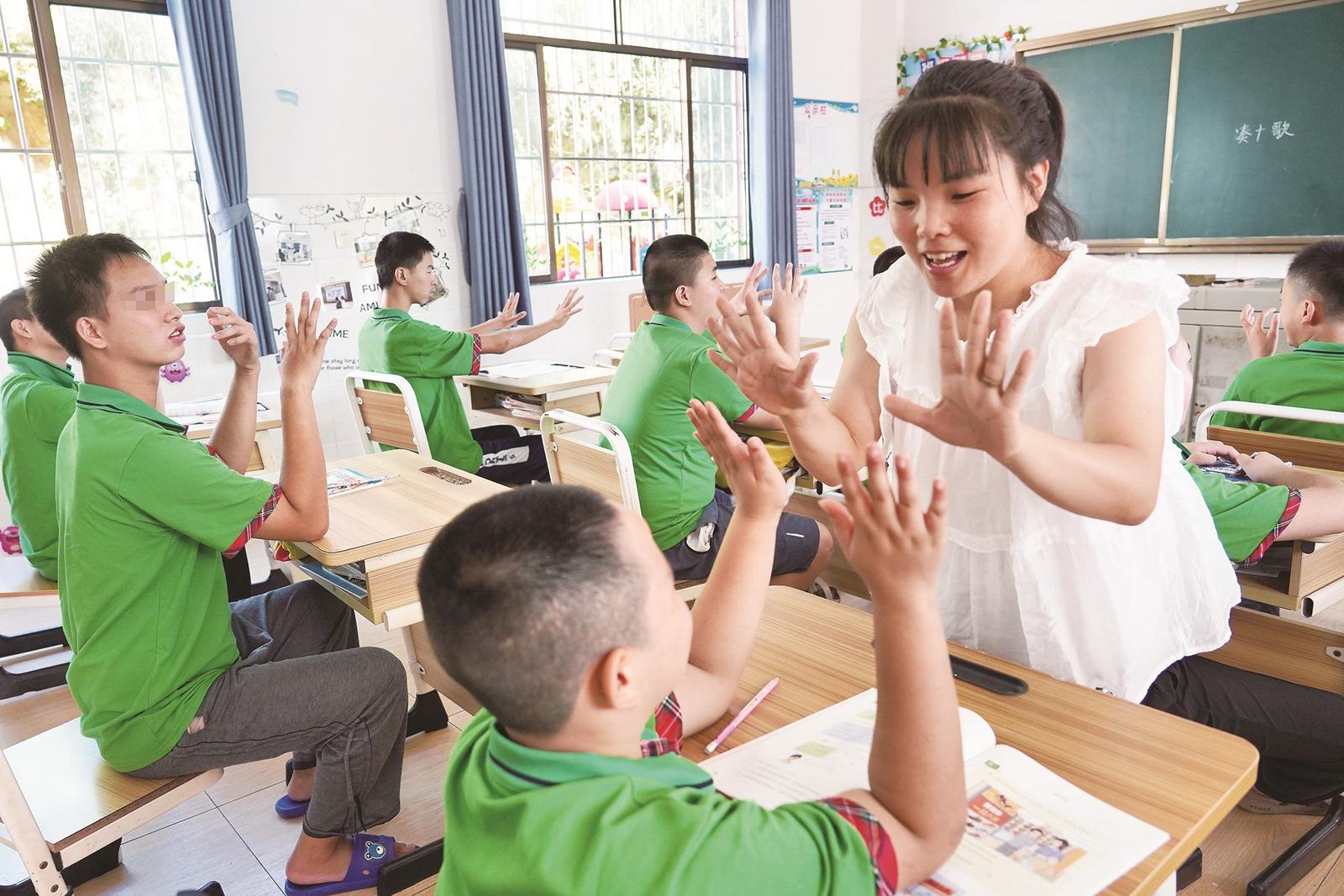 9月12日,隆回县特殊教育学校教师在给学生上课。一直以来,该校坚持因材施教理念,致力发掘每一个孩子的潜能,帮助他们更好地融入社会。