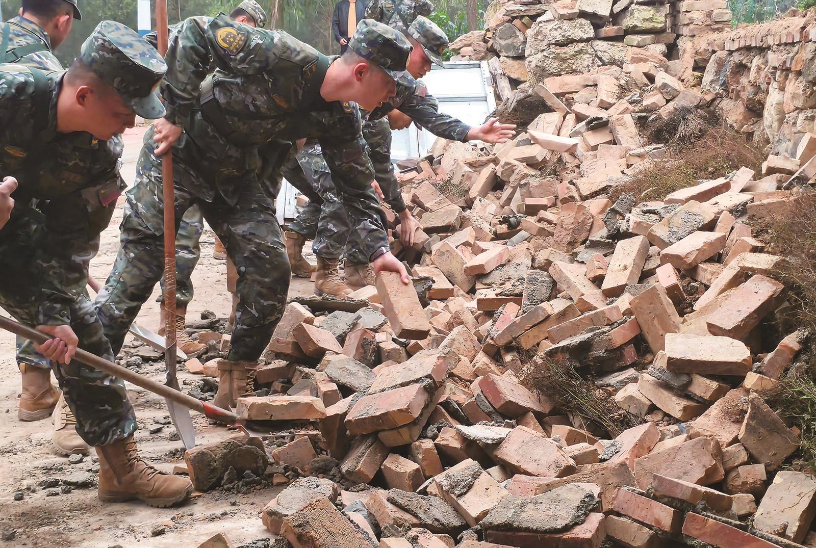 9月27日,武警甘肃总队定西支队官兵在定西市陇西县文峰镇桦林村展开救援。 新华社发(侯崇慧 摄)