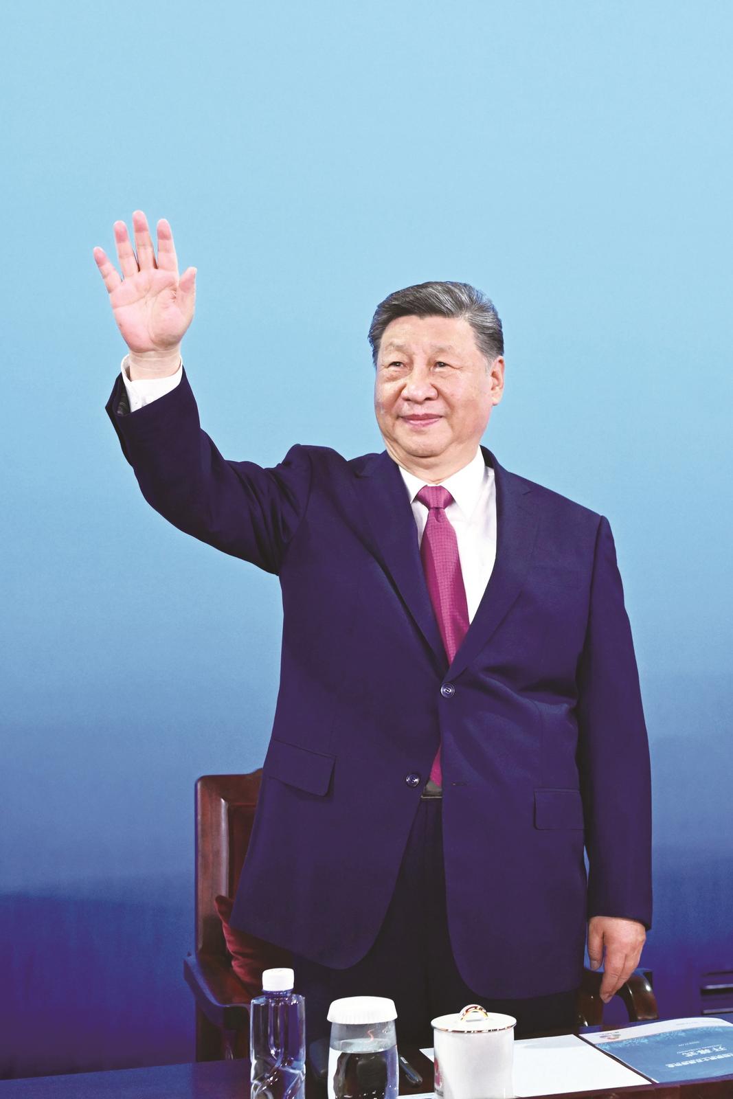 11月9日晚,中共中央总书记、国家主席、中央军委主席习近平在广东省广州市出席中华人民共和国第十五届运动会开幕式并宣布运动会开幕。这是习近平在主席台上向大家挥手致意。 新华社记者 燕雁 摄