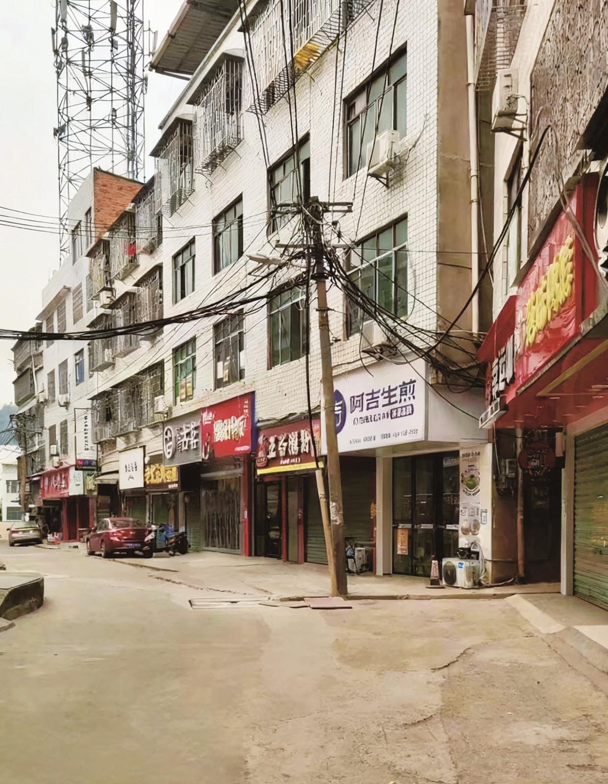 改造前,邵阳学院后街的空中电缆像一张“蜘蛛网”。