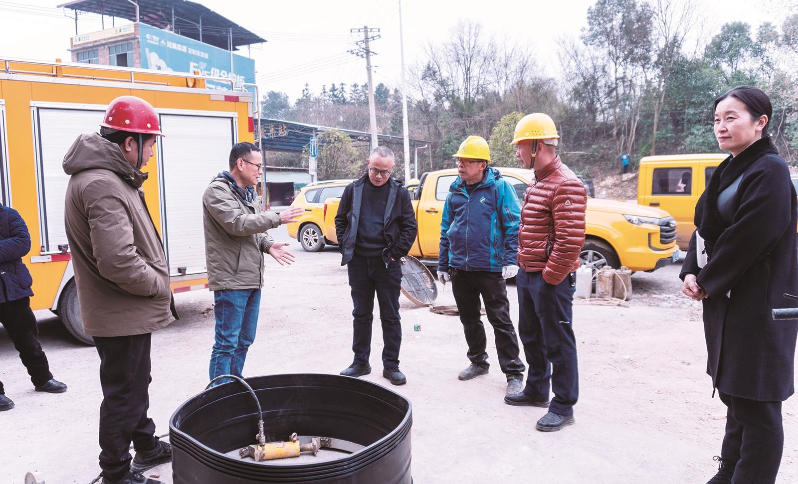 ▲邵东市住建局和自来水公司领导现场调度指挥,推进城区供水管网改造升级。