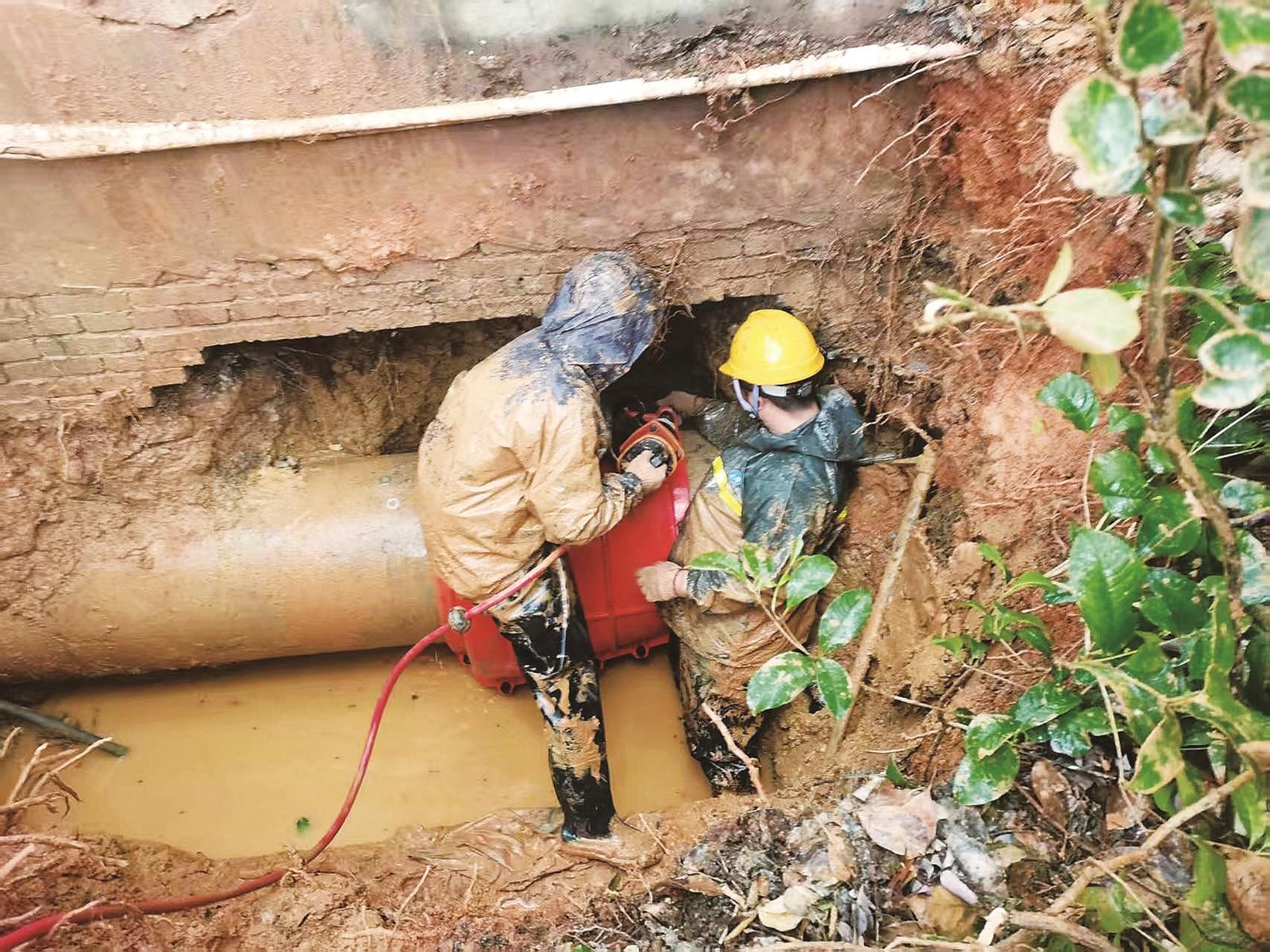 邵东市自来水公司工作人员抢修漏水管道。 殷文斌 摄