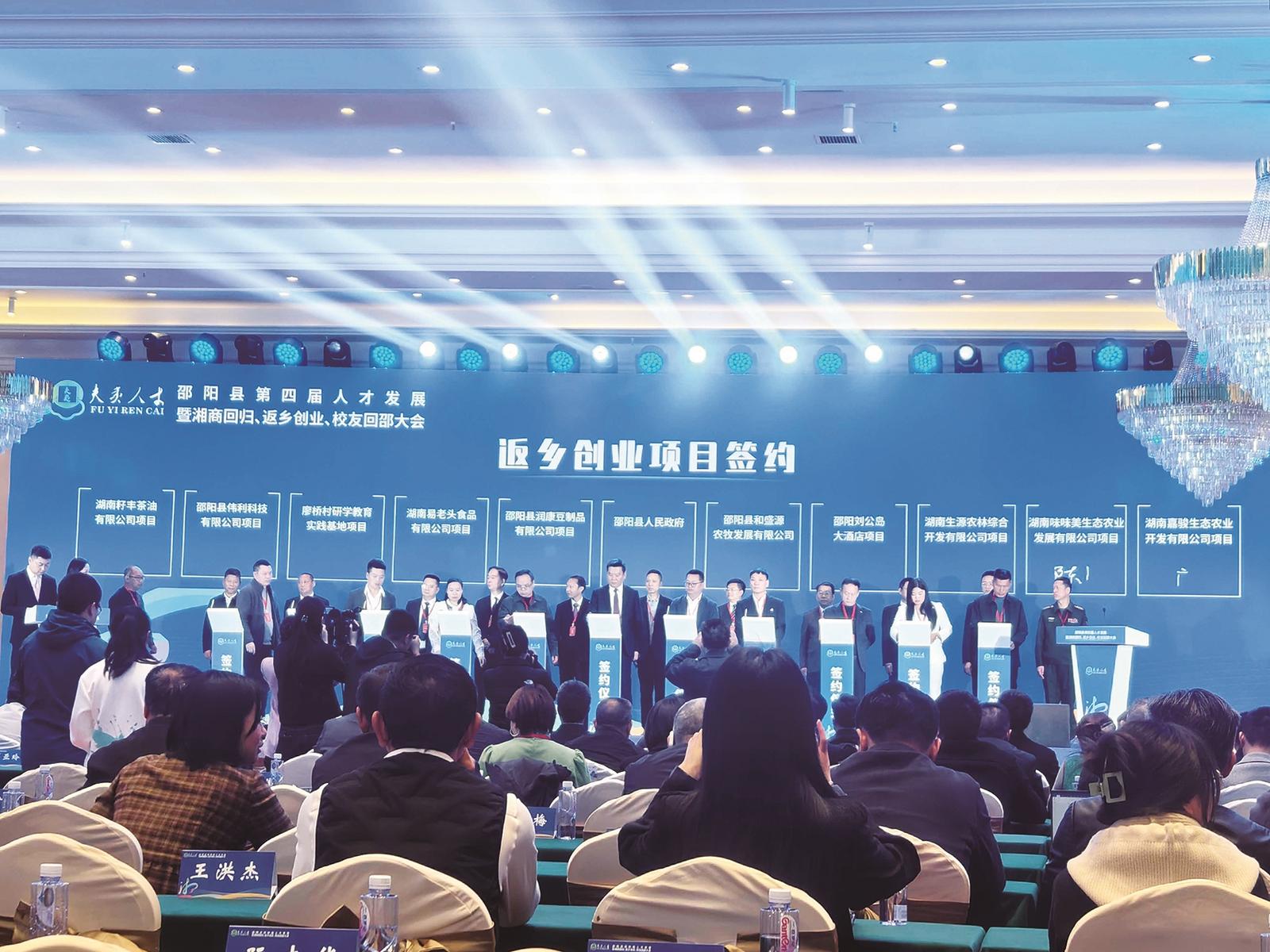 今年4月,邵阳县隆重举行第四届人才发展暨湘商回归、返乡创业、校友回邵大会。