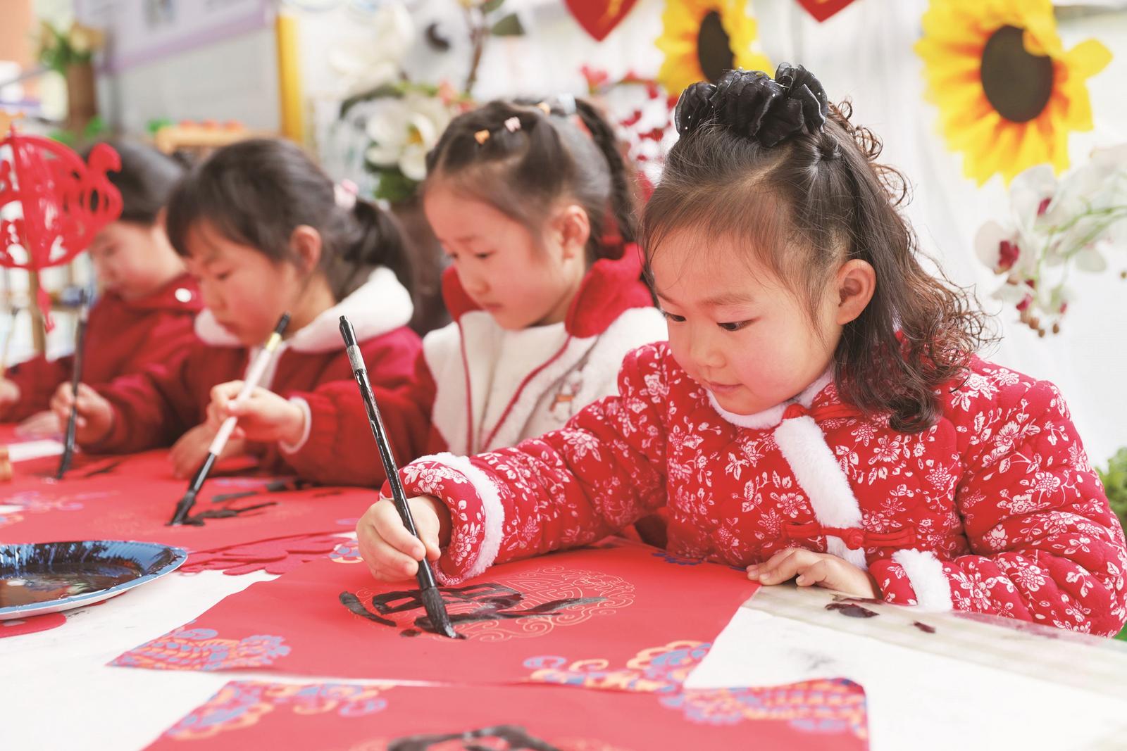 新年将至,各地开展丰富多彩的活动,人们在欢乐的氛围中迎接2026年的到来。12月29日,贵州省贵阳市开阳县第二幼儿园的小朋友书写“福”字迎接新年。