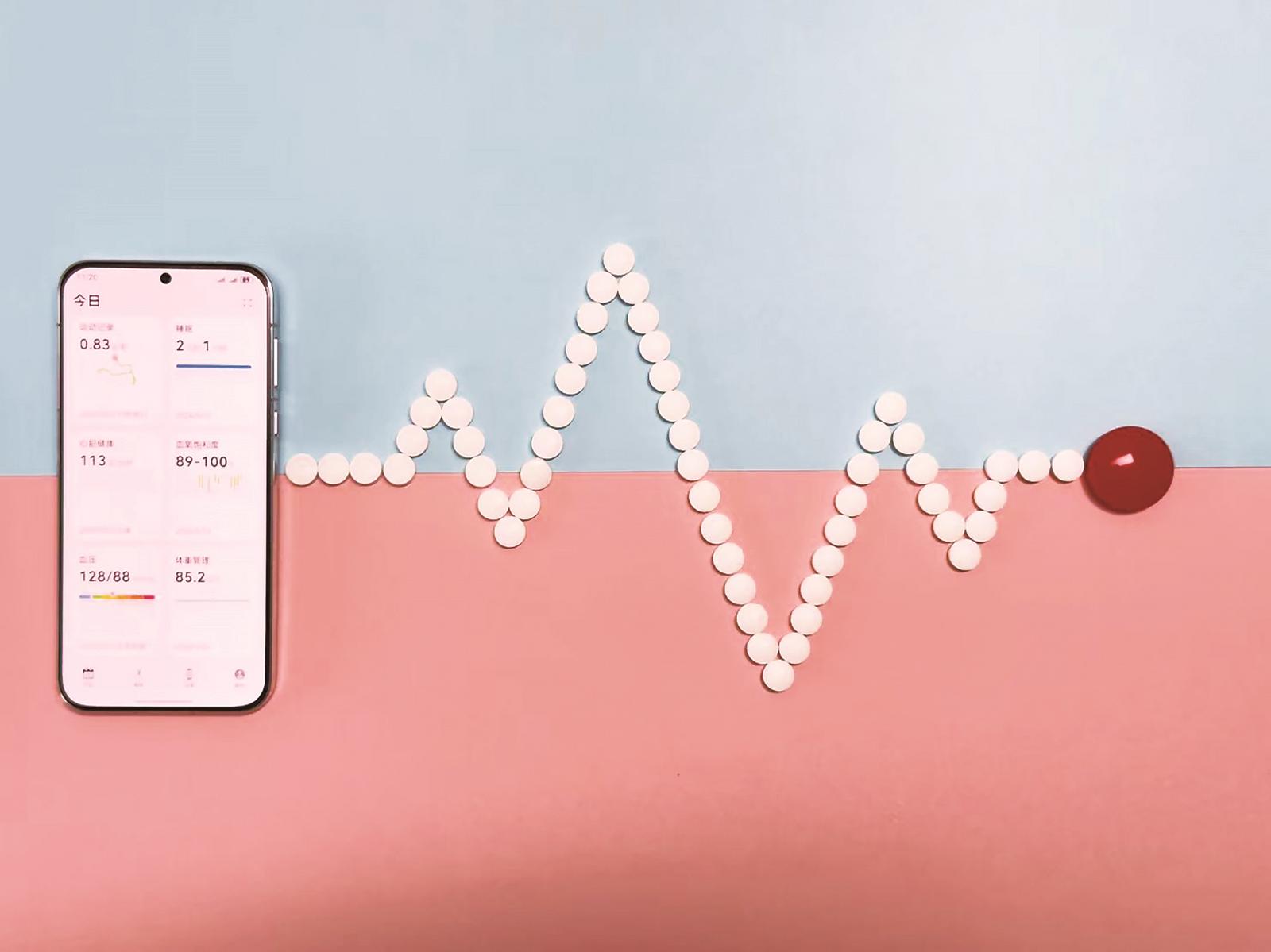 现在智能手机在健康监测方面应用很广泛,人们可以随时了解自己的健康状况。将手机与药丸组合的心电图结合,表达了健康监测与管理、医疗科技的进步等多方面的思想,同时引发观众对现代生活方式的反思,以及对生命的思考。