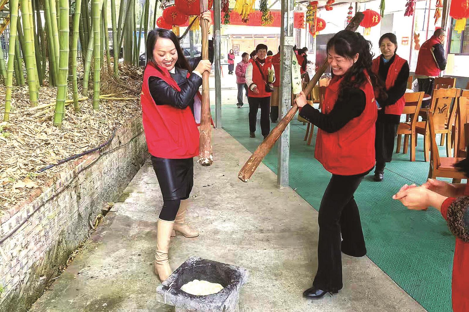活动现场,大家还围在一起打糍粑、写春联、榨甘蔗汁,欢笑声此起彼伏。