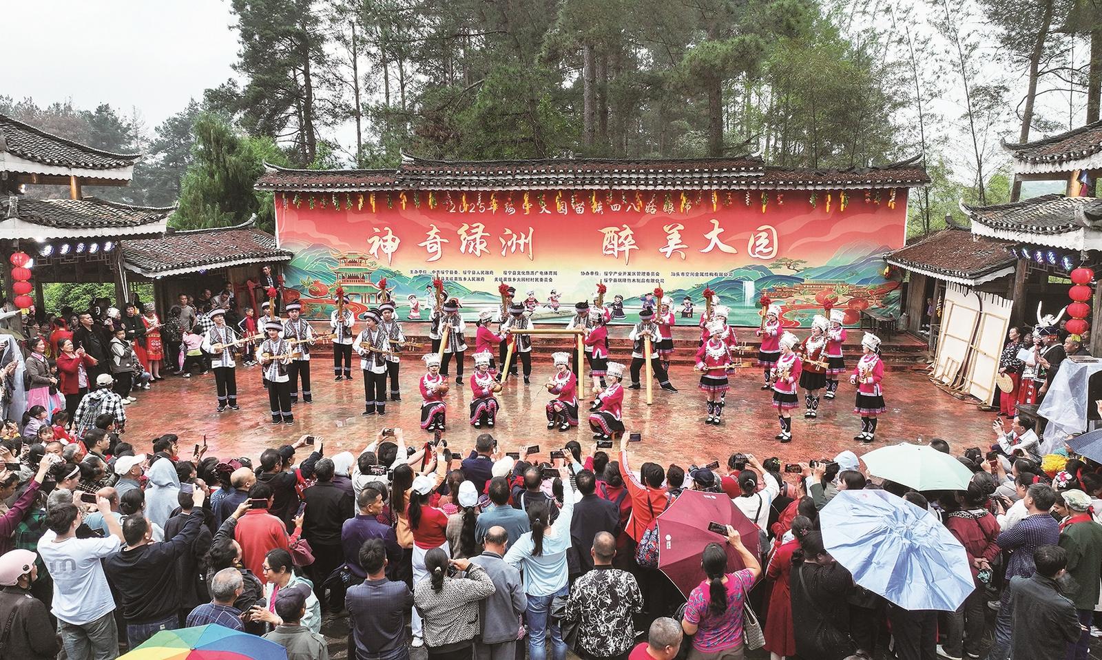 2025年5月5日,众多游客在绥宁县关峡苗族乡大园村欢度绥宁苗族四月八姑娘节。