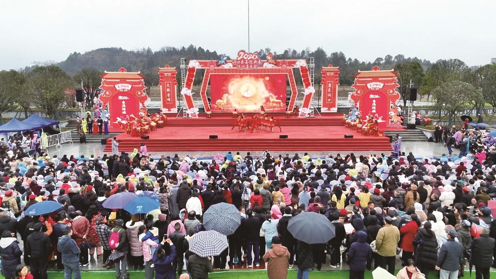 邵阳日报讯(记者 蒋易薇 通讯员 肖皓静 王哲 滕绍忻 刘程康 曾茵苔)2月10日,“骐骥驰骋,春满橘城”——2026年洞口县新春文化喜乐会拉开帷幕,点燃了当地文旅消费新热潮。据初步统计,喜乐会首日即吸引数万群众参与,带动周边餐饮、零售及特色农产品消费超150万元,县域重点景区预约游客量同比增长明显。