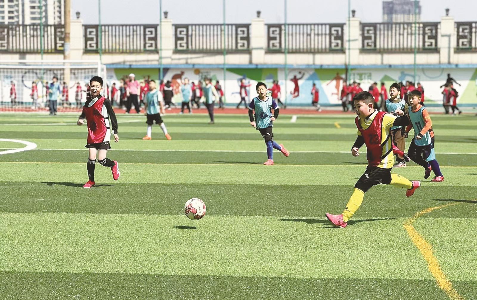 学生进行足球比赛。