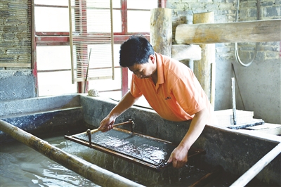 本报讯 “我从1980年学会传统工艺抄雪花皮纸和土纸至今,一直坚持下来,不是为了赚钱,而是不想让这种民间手工艺无声消失。这次我被评为隆回县能工巧匠,这是对我坚守36年来的一种鼓励。”8月21日,隆回县麻塘山乡八角楼村56岁的传统抄纸传承人伍先容一边抄纸一边说。