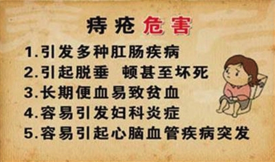 曾劲松提醒,市民平时饮食不节,过食醇酒厚味、辛辣生冷刺激,或饥饱失常,或因起居失慎,久坐久立,负重远行,或房室过度,或因久泻久痢,长期便秘,妊娠生产,腹部肿瘤压迫等,均可使风湿燥热内生,气血不调,以致经络阻滞,瘀血浊气下注肛门而形成内痔。内痔的特点是无痛性便血,后期可有痔核脱出。内痔患者,可因肛门坠胀感而便意频频,或惧怕出血而不敢排便、致使腑气不畅而发生便秘。如果市民发现有任何不适,一定要及时就医。
