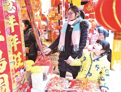 在市区三眼井市场附近的多家门店摆满了丰富多彩的春联、红包袋、中国结,各式各样寓意吉祥的挂件、象征红火生活的灯笼等也被商家挂到了醒目位置。不少市民表示,今年的春联和红包袋很新颖,加入了鸡年的生肖元素。过年挑选几副自己满意的春联,红彤彤往门上一贴,着实喜庆。