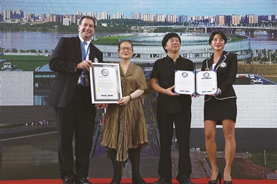 上午10时,在展馆外大厅,一场别开生面的颁证仪式在著名的旅德钢琴演奏家周木女士《我爱你中国》《黄河颂》高亢激昂的乐曲中拉开序幕。当詹姆斯先生宣读了世界纪录证书:“李自健美术馆的总面积达到2.5万平方米以上,被认证为全球最大的艺术家个人美术馆!”顿时,全场爆发出一片热烈的掌声。
