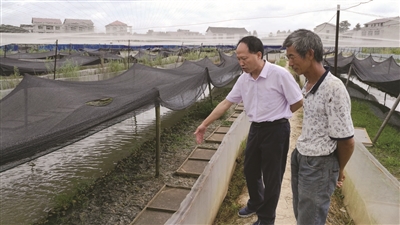 本报讯 7月19日上午,在大祥区板桥乡立新村的黑斑蛙驯养繁殖基地,成群结队的幼蛙们静静伏在遮阳棚下,受到人声惊扰后扑通扑通跳入水,煞是好看。对于市科技局扶持引进的这一科技项目,从贫困户变身“蛙司令”的姚珍和满脸喜悦:“去年引种成功后,我今年又把养殖规模从5亩扩大到10亩。算起来,每亩有1万元以上的纯收入。”