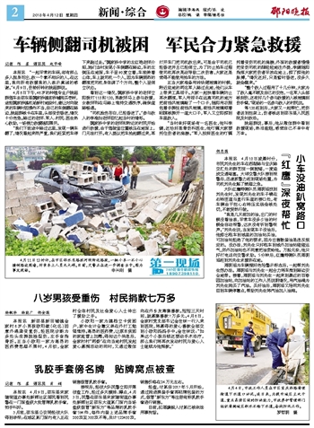车辆侧翻司机被困 军民合力紧急救援
