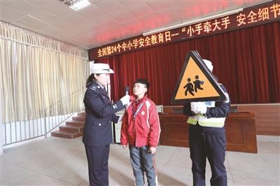 第24个全国中小学生交通安全日以“小手牵大手,安全细节记心头”为主题。邵阳交警支队联合教育部门,组织双清交警大队民警来到邵阳市区华竹小学,通过有奖问答互动方式,引导学生积极参加交通安全知识学习。