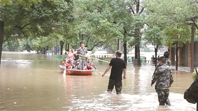 以为自己可以蹚水送食物送入家,谁知洪水大得超过了他的想象。但是他马上就不着急了,因为他注意到了洪水中的那抹“迷彩色”。大祥区武装部民兵应急连大清早就带着两艘冲锋舟、一只皮划艇在开展救援了。有人告诉他,救援人员已经进出几趟,救出几十个人了,待会可以乘舟进去,再把他家人接出来。