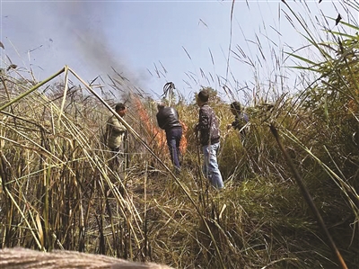 原来,该起火点系村民陈某开荒焚烧秸秆引发。发现山火控制不住,他便自发组织家人救火。由于风势很大,野火借着山风迅速蔓延,肆无忌惮地吞噬着树木、杂草,火苗越蹿越高,未能及时控制住火情。到达现场后,火已经快烧到半山腰,庆幸的是着火区域处于下风向,村干部、村民和扶贫队员立即投入到扑灭山火的战斗中。