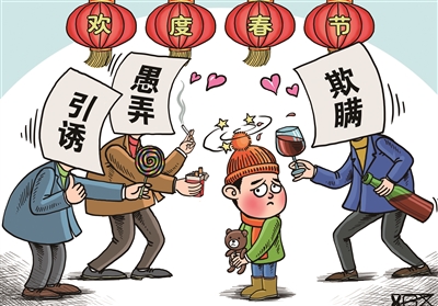 春节是亲人团聚、走亲访友的好时光,天真烂漫的孩子给人们带来欢声笑语。但遗憾的是,一些“恶趣味”逗弄孩子的行为也不时出现。 实际上,多数成年人逗孩子的行为并没有恶意,甚至是发自内心的喜爱。但由于孩子的认知能力有限,心智尚未成熟,难以明确表达内心的感受。如果大人开玩笑超过了“度”,用欺瞒、引诱、愚弄等方式逗弄孩子,拿孩子的纯真可爱取乐,这是对孩子的不尊重,更不利于孩子的身心健康。 己所不欲,勿施于人。大人需要换位思考、转变观念,与孩子逗趣时,要以让孩子学到知识、健康成长为出发点。这样有才利于培养孩子健康的身心,也有利于形成良好的亲子关系、和谐的家庭氛围。