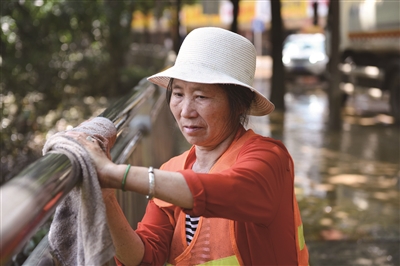 “谢谢你们,你们辛苦了。”一家门店老板说,自己从早上就过来打扫,把店内的泥水扫干净。因为洪水浸泡,有不少废弃物品需要处理。城管队员和环卫工人帮他搬运这些物品,让他减轻了不少工作量。