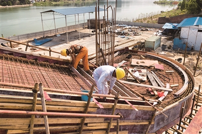 大桥上下人行梯施工。