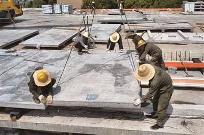 吊装人行道铺板。