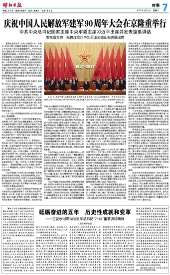 庆祝中国人民解放军建军90周年大会在京隆重举行
