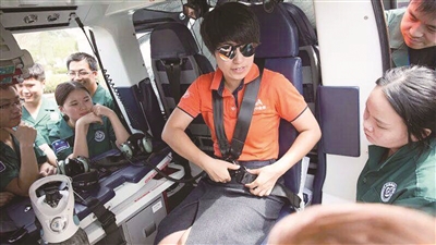执行本次培训任务的救援直升机,为意大利莱奥纳多公司AW119/B-70PR专业医疗构型直升机,飞行时速高达280千米,舱内配备了国际一流的除颤监护仪、高压氧气瓶、呼吸机、吸痰器、注射泵等设备,有着“空中120”之称。
