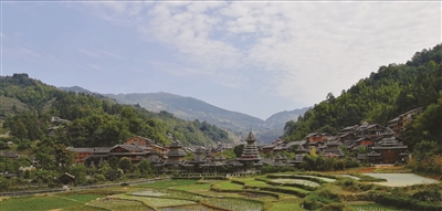 肇兴侗寨,位于贵州省黔东南苗族侗族自治州黎平县东南部,是侗族的民俗文化中心。寨子建于山中盆地,四面环山,山中流淌下来的两条小溪,汇成一条小河穿寨而过,寨中房屋多为干栏式吊脚楼,鳞次栉比,错落有致。寨中居民为陆姓侗族,分为五大房族,分居五个自然片区,当地称之为“团”,分别为仁团、义团、礼团、智团、信团。
