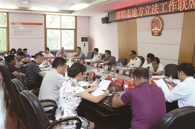 8月1日上午,市人大常委会二楼会议室里座无虚席,市地方立法工作联席会议在此召开。“在建军节这个特殊的日子里,我们首次召开邵阳市地方立法工作联席会议,希望听听大家对地方立法工作的思路和意见,共同研究部署下一阶段地方立法工作。”会议一开始,市人大常委会副主任赵为济就开门见山说明会议主旨。