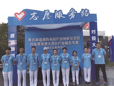 7月29日至7月31日,“推进湘南湘西承接产业转移示范区对接粤港澳大湾区产业融合发展”高峰论坛系列活动(以下简称“高峰论坛活动”)在邵阳举行。在三天当中,身穿蓝色T恤的志愿者,成为高峰论坛活动中的一道靓丽风景,他们用礼貌和微笑、汗水和努力,向所有领导和客商展示了好客邵阳的开放情怀。