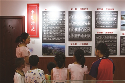 “该馆是由湖南工商大学驻卓笔村帮扶工作队出资修建。70岁的退休教师彭福元义务收集整理史料半年多,最终将卓笔村的历史较完整地展现了出来。”8月1日,卓笔村史馆讲解员陈艳华正在向前来参观的人员讲解村史馆建设过程。