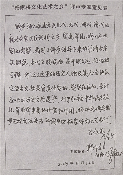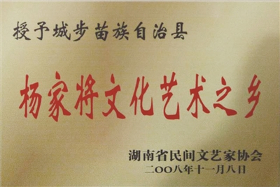 从2004年4月至2008年11月,湖南省文史馆馆员、中国民俗学家李鸣高,湖南省文史馆馆员、省政府参事、湖南文艺出版社原社长弘征,湖南省文史馆馆员、省政府参事、省政策研究室原主任郭辉东,湖南省社会科学院历史研究所原所长、研究员、省文史馆馆员伍新福,湖南省文史馆馆员、研究员、省文联副主席、省民间文艺家协会主席张劲松等十八位专家、教授一行,经过多次深入城步考察,对城步杨家将的历史遗迹、民间史料与国家正史、地方史志相核对后,一致评定城步为“中国南方杨家将文化艺术之乡”。2012年8月,城步“苗族杨家将传说”被湖南省人民政府确定为“湖南省非物质文化遗产”。