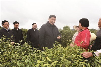 4月20日至23日,中共中央总书记、国家主席、中央军委主席习近平在陕西考察。这是4月21日,习近平在安康市平利县老县镇蒋家坪村女娲凤凰茶业现代示范园区,同茶农们亲切交谈。 新华社记者 谢环驰 摄