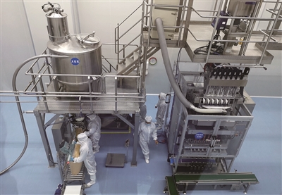 4月22日,城步苗族自治县湖南羴牧营养品科技公司,员工在对装袋的全脂羊奶粉进行封口。2月下旬以来,城步苗族自治县两家民营乳制品企业一手抓疫情防控,一手抓恢复生产。目前,他们均已复工复产,正全力提升产能,夺回疫情带来的损失。